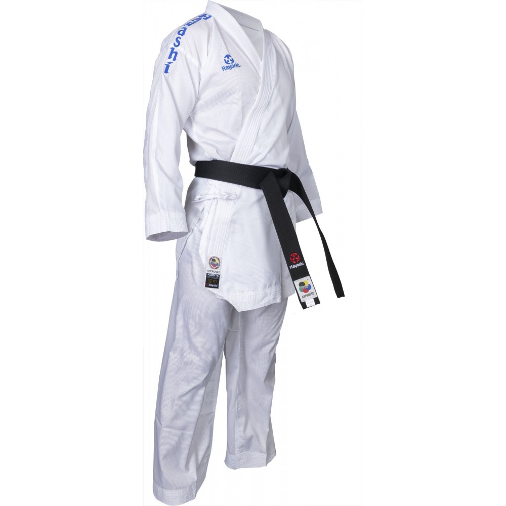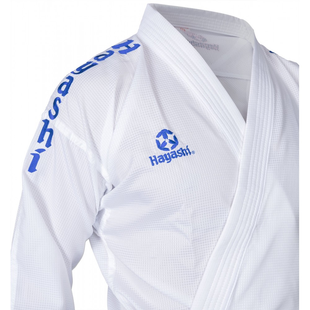 Mesh inserts and a unique fabric structure make the “Air Deluxe†Karate Gi from Hayashi unmistakable. With its hem edges shortened to the inside, it makes your look on the mat perfect all around. As a lightweight among the Kumite karate suits, it also convinces with a body-hugging fit, which still offers plenty of freedom of movement. The seams are extra reinforced, and the jacket's lapel is stitched several times. The WKF-approved label is located on the lower hem of the jacket.