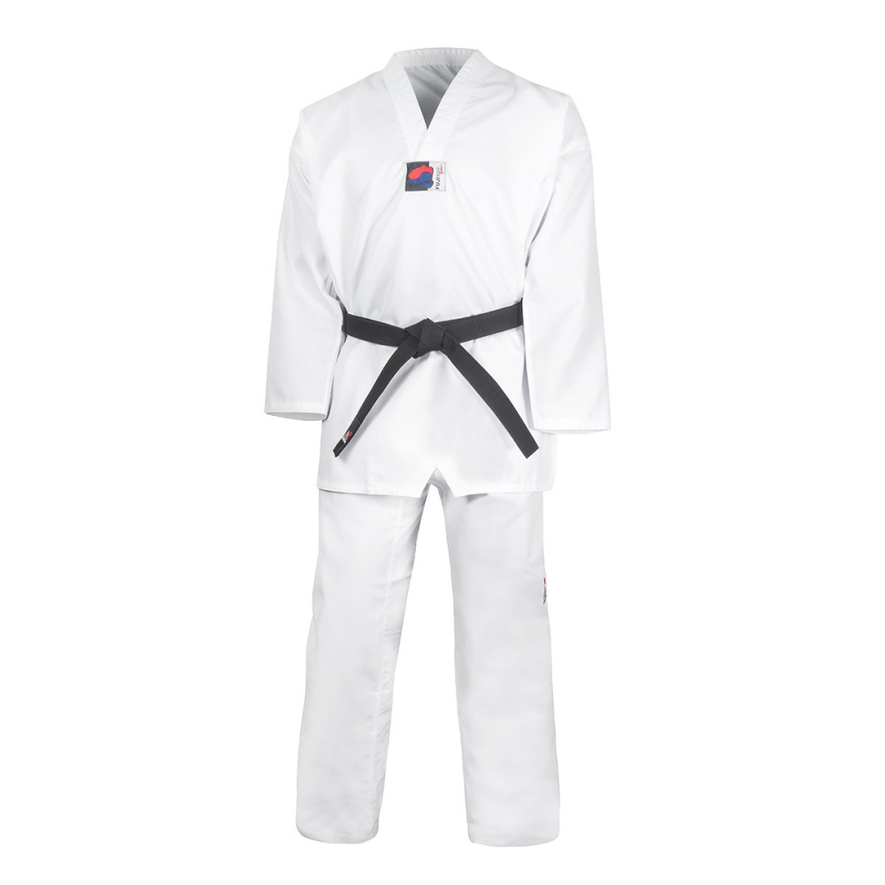 De Basic WT Dobok is bedoeld als een eerste uniform voor beginners en een goedkope training en combineert functionaliteit en eenvoud zonder afbreuk te doen aan de kwaliteitsnormen. De ideale metgezel om uw lange reis te beginnen. • Gemaakt van een mix van polyester en katoen, krimpt minder en droogt sneller dan alleen katoenen uniformen. De Basic WT Dobok staat op elk moment klaar zodat u met uw training kunt beginnen. • De combinatie van productiekwaliteit met de geselecteerde ultralichte 6,5oz-stof garandeert dat de levensduur van de Dobok niet in het gedrang komt en maakt het eveneens een handig uniform voor training tot matige intensiteit in de warmste seizoenen. • Hetzelfde patroon als uniformen van hogere kwaliteit. • Elastische tailleband met veters in alle maten, waardoor de broek correct kan worden aangepast aan de taekwondist. • Eenvoudig en aanpasbaar ontwerp. Neem contact met ons op voor meer informatie. • FUJIMAE Basisproduct: Essentiële, iconische, tijdloze en neutrale uitrusting. Ontworpen om de laagste prijs te bereiken, met aandacht voor detail en zonder concessies te doen aan de kwaliteit. De knowhow van een specialist toegankelijk voor iedereen.