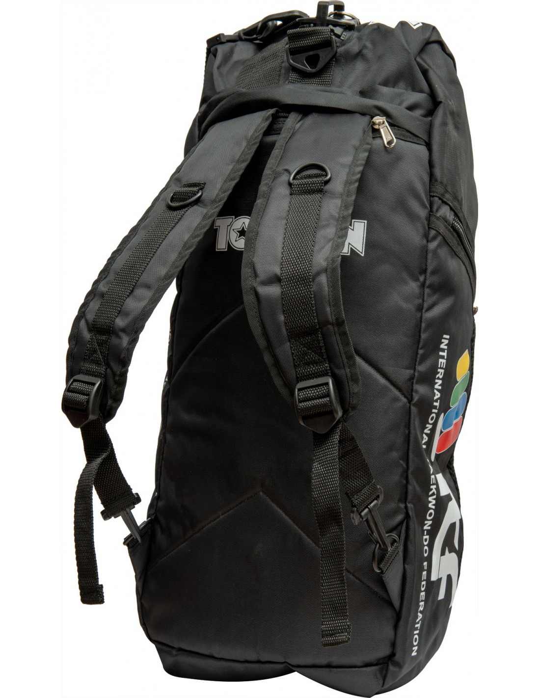 Vind je weg en laat je vergezellen door de “ITF Nero†rugzaktas. Van een kort bezoek aan de sportschool tot een uitgebreid trainingskamp, TOP TEN biedt je een ruimte op maat met dit model in 2 verschillende maten. De “ITF Nero†is voorzien van een stijlvolle oversized rits zodat je snel bij je inhoud in het grote hoofdvak kunt. De twee praktische buitenzakken zorgen voor orde en dankzij het slijtvaste nylon materiaal is de inhoud goed beschermd tegen vocht en vuil. Het draagsysteem kan in enkele seconden worden omgeschakeld van een tas met handvatten en schouderbanden naar een rugzak met rugbanden.